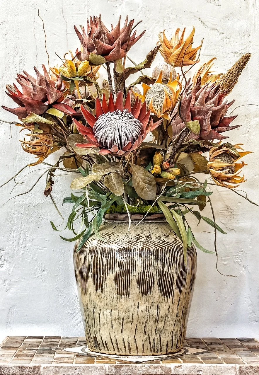 Vase: 12.5"W x 13"T | Vase & Flowers: 20"W x 37"T